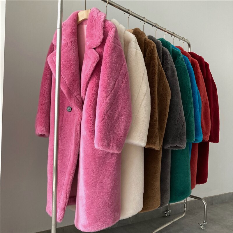 Korean Fashion 100%Wool Coat Women Big Turn-Down Collar Solid Elegant Long Winter Jacket 2022